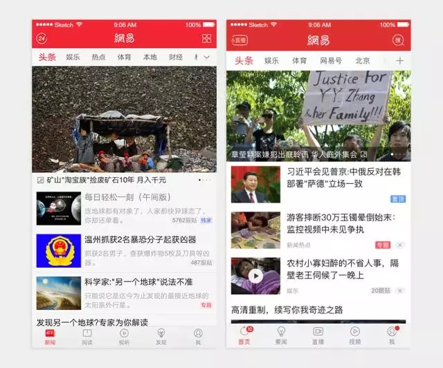 △ 左為2016年的網(wǎng)易新聞,右為現(xiàn)在的網(wǎng)易新聞