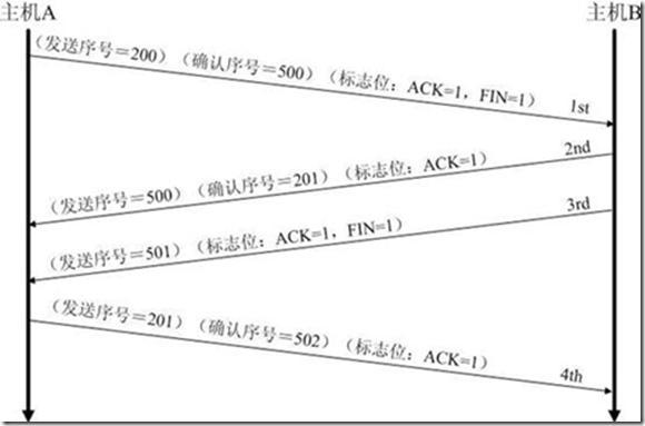 4) 客戶端A發(fā)回ACK報文確認,并將確認序號設(shè)置為收到序號加1。