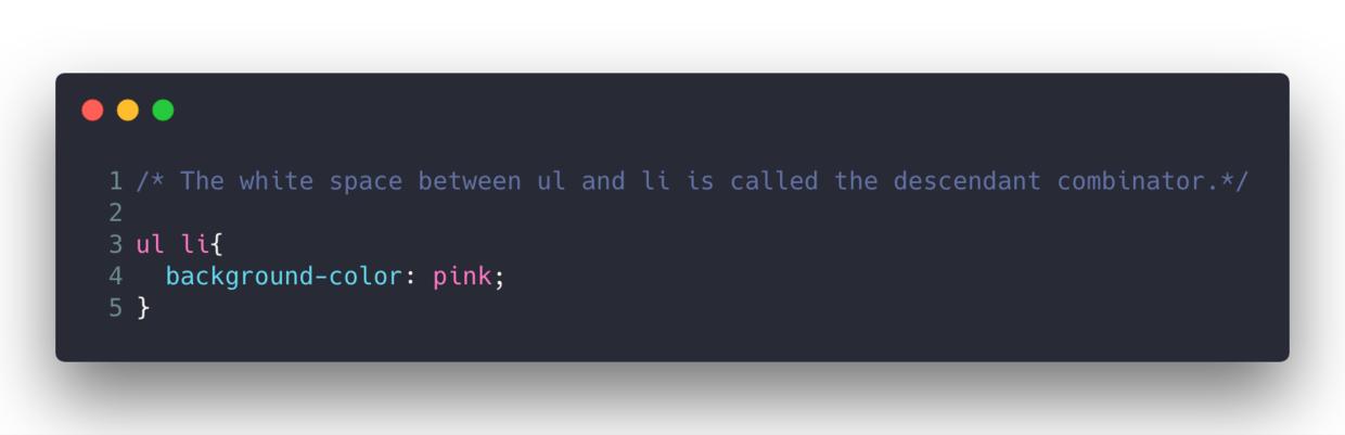 后代選擇器你知道樣式選擇器中間的小空格嗎?它實際上還有一個名字,它的名字是后代選擇器。