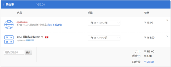 這里我們可以直接購買域名以及選擇香港虛擬主機(速度好),一并購買且綁定單站點主機,如果我們搭建一個網(wǎng)站就直接購買Plan A主機套餐,使用優(yōu)惠碼MDD 虛擬主機有7折優(yōu)惠。
