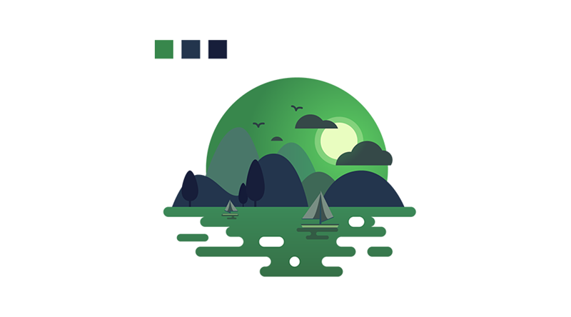 利用低明度,中高純度的顏色調(diào)和而成的夜晚景象。畫面表現(xiàn)出安靜,祥和的氣氛。