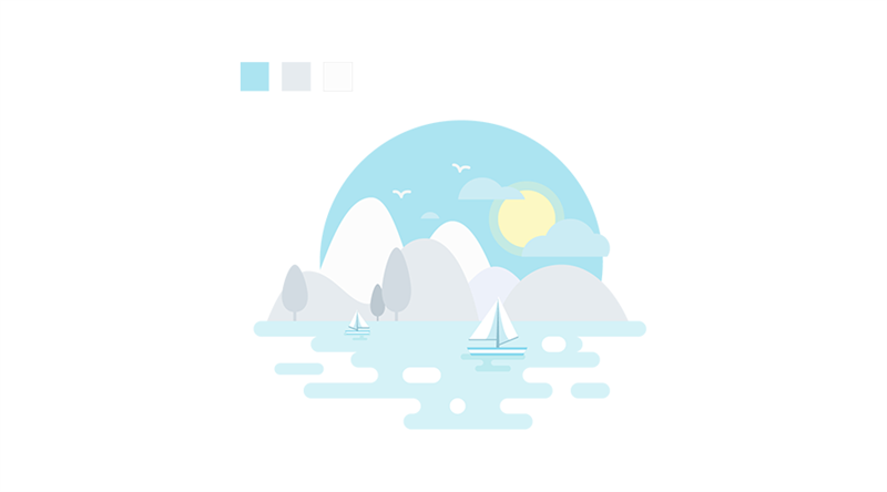這張圖想表達(dá)的是冬日的風(fēng)景,冬天清澈,干凈的印象使我選擇了淺色調(diào)調(diào)和,同時(shí)利用了明度的變化來表現(xiàn)層次感。