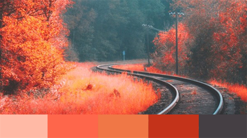 這是有統(tǒng)一色調(diào)構(gòu)成的統(tǒng)一性配色。深色調(diào)和暗色調(diào)等類似色調(diào)搭配也可以形成同樣的效果,即使出現(xiàn)多種色相,只要保證色調(diào)i 址,畫面就能夠體現(xiàn)出整體的統(tǒng)一性。