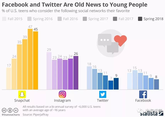 不同的社交媒體對應(yīng)的用戶人群不同,要根據(jù)目標(biāo)用戶畫像來選擇適當(dāng)?shù)纳缃幻襟w。比如說,LinkedIn和Twitter對于B2B營銷人員來說是效果是最好的;Pinterest和YouTube對于B2C用戶來說則是更合適的選擇。對于大部分目標(biāo)用戶是海外的年輕用戶群體產(chǎn)品來說,則需要時刻了解年輕人最喜歡什么類型的社交媒體,因為年輕人喜歡的社交媒體代表最新的時尚潮流風(fēng)向標(biāo)。根據(jù)專業(yè)數(shù)據(jù)統(tǒng)計平臺Statista數(shù)據(jù),2013年,F(xiàn)acebook依然是最受美國年輕用戶歡迎的社交媒體,2014開始Instagram成為他們的新寵兒。到了2016年,Snapchat則取代Instagram成為美國青少年最喜愛的社交媒體。