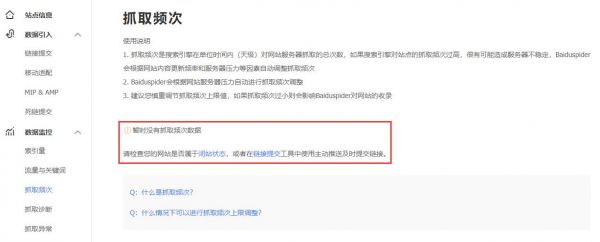 同時,如果這些外鏈跟你行業(yè)相關,你依然可以獲得足夠的權重。小編新注冊的域名,已經添加到百度站長平臺一周了,每天定時更新,并主動推送給百度,截止目前還提示暫時沒有抓取頻次數(shù)據(jù),直接提示的是請檢查您的網站是否屬于閉站狀態(tài),或者在鏈接提交工具中使用主動推送及時提交鏈接。