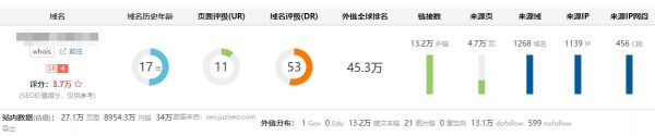 這里我們需要用到桔子SEO工具來進行查詢域名年齡,歷史快照,外鏈情況等。