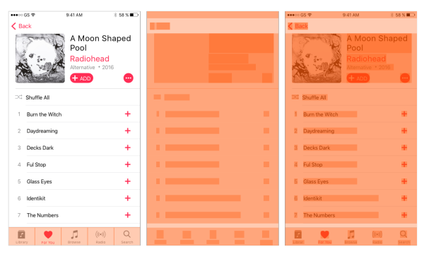 拿 Apple Music 舉個(gè)小栗子。Apple Music 的專輯頁(yè)面大致可以分為三個(gè)大視圖: