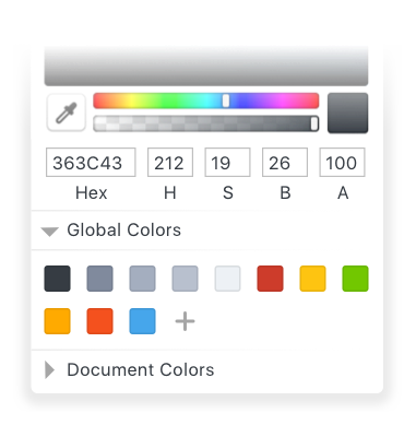 所以在設(shè)計(jì) UI 的過(guò)程中請(qǐng)妥善保管你選定的顏色。如果時(shí)間充裕的話最好專門新建一個(gè)畫板來(lái)保存你的顏色并使用 Sketch Measure 與其他 asset 一并輸出。這樣開(kāi)發(fā)就能夠復(fù)制上面的十六進(jìn)制碼直接粘貼到他們規(guī)定顏色的文檔里面去了。