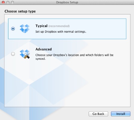 小提示:我們應(yīng)該讓人們可以選擇他們想完成某項(xiàng)任務(wù)的方式。舉個(gè)例子,Dropbox 的安裝界面中,我們可以自由選擇不同的設(shè)置類型。如果選擇高級(jí)模式,人們則可以自定義軟件的安裝路徑,同步盤的位置等等。