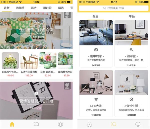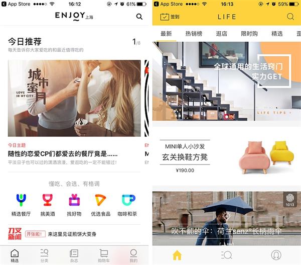 △ 美食電商Enjoy和興趣導(dǎo)購(gòu)life首頁