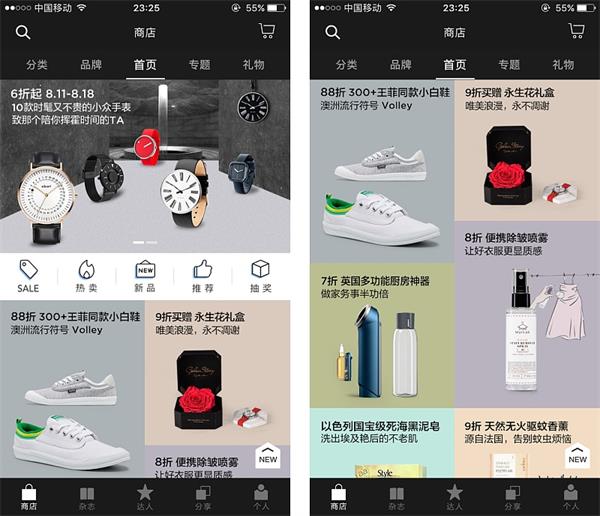 垂直電商的用戶,可能購(gòu)物的目的性不是很明確,一般都會(huì)以逛為主,通過逛發(fā)現(xiàn)自己喜歡的一些商品完成購(gòu)買行為。所以首頁會(huì)放置各種形式的商品推薦。推薦形式一般有