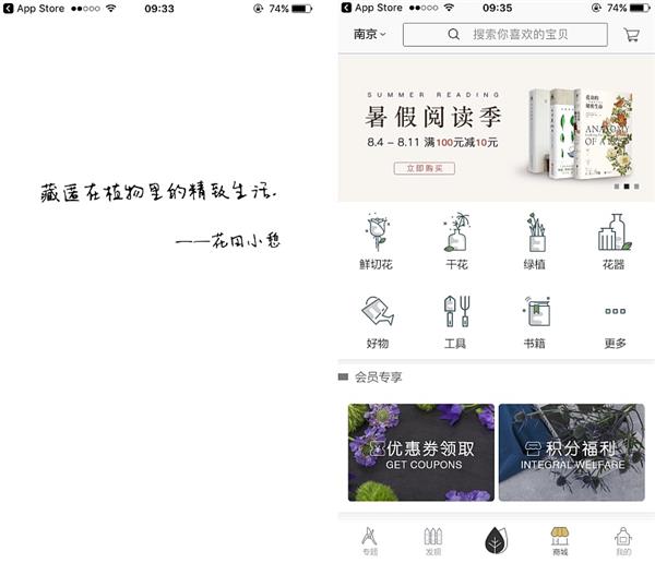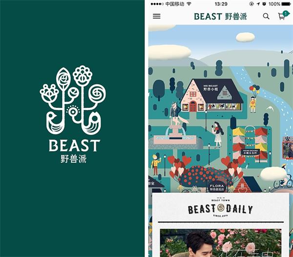 野獸派是綜合類的時(shí)尚類家居相關(guān)售賣平臺(tái)。野獸派本來是一個(gè)買花起家的應(yīng)用,她賣的不是花,而是花一般的美好的生活理念。隨著越做越大,品類也擴(kuò)張到各種家居、美妝、香氛、配飾和美食等。這里比較吸引人的是野獸派的首頁交互設(shè)計(jì)。使用一個(gè)整張插畫,作為首頁各種子模塊店鋪的入口。這樣的設(shè)計(jì)別具一格,的確第一眼非常的吸引人。