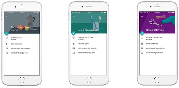 此外,用戶(hù)對(duì)于具象元素(插畫(huà),icon,圖像或攝影圖等)的感知能力遠(yuǎn)比文字要強(qiáng)得多。所以同樣的一個(gè)日程安排,使用了插畫(huà)了以后,用戶(hù)可以在極短時(shí)間內(nèi)明白,這個(gè)是和同事的咖啡約會(huì),那個(gè)是要去牙醫(yī)那里看病。