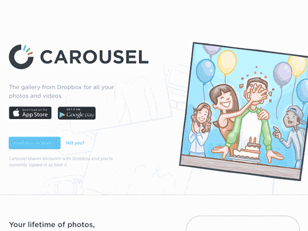 Dropbox Carousel是一個(gè)為Dropbox用戶(hù)管理照片和視頻的app。即使這款app管理的主要都是攝影圖,但是設(shè)計(jì)師在進(jìn)行UI設(shè)計(jì)的時(shí)候還是摒棄了攝影圖。因?yàn)樗麄冋J(rèn)為,用戶(hù)看到一張照片,只要主角不是本人,他們就很難產(chǎn)生關(guān)聯(lián)感。比如圖中的那個(gè)過(guò)生日?qǐng)鼍埃@里采用插畫(huà)會(huì)給我們一種很溫馨的感覺(jué)。如果是真人出鏡這種感覺(jué)就會(huì)減弱,因?yàn)槟莻€(gè)人不是我啊。相比于圖片,用戶(hù)對(duì)于插畫(huà)更具有代入感。