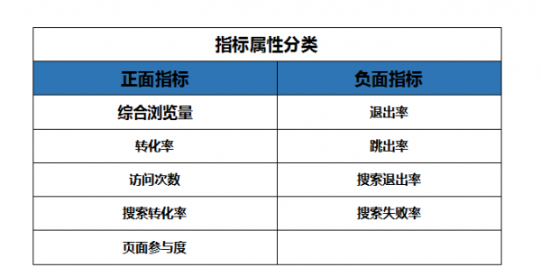 在分析這些分解目標(biāo)前,我們需要先將問題轉(zhuǎn)化為可以度量的指標(biāo),例如目標(biāo)的正面指標(biāo)制定即是可以促進(jìn)網(wǎng)站目標(biāo)完成度的指標(biāo),目標(biāo)的負(fù)面指標(biāo)制定是可以降低網(wǎng)站目標(biāo)完成機(jī)會(huì)的指標(biāo)。如下圖所示: