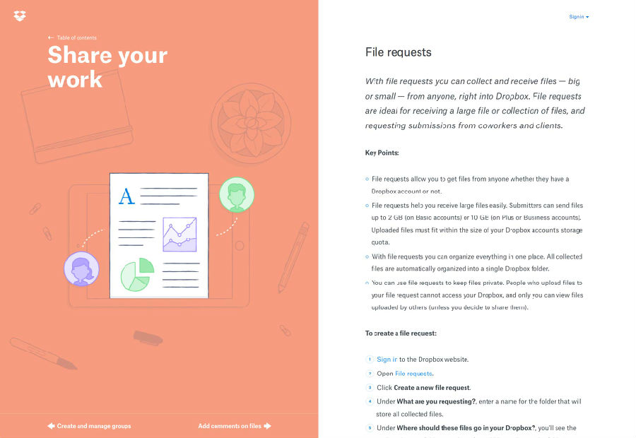 一個(gè)屏幕上,Dropbox引導(dǎo)兩個(gè)重要內(nèi)容