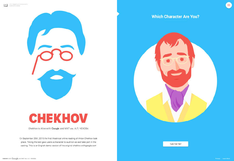 精美的動畫和互動效果,鼓勵用戶點(diǎn)擊。看看用于“設(shè)計(jì)契訶夫還活著“下面的網(wǎng)站。設(shè)計(jì)要求你點(diǎn)擊找到你的個(gè)性。