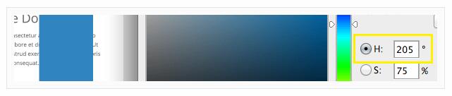 一旦你選定了強調(diào)色,將色相(H)滑條位置保持不變。你現(xiàn)在需要為你的設計添加額外的顏色,不過為了讓事情變得更簡單,這些顏色都是你已經(jīng)選擇的強調(diào)色的變色。