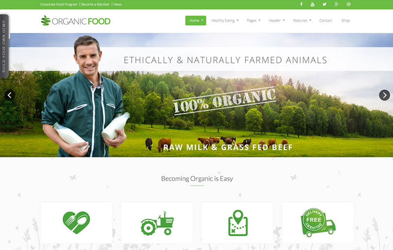 Organic Food 的網(wǎng)站中大量使用了綠色。