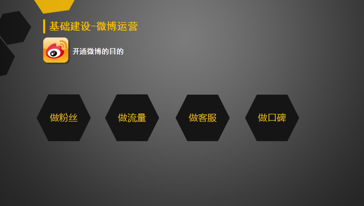 產(chǎn)品的基礎(chǔ)建設(shè)主要包括一整套比較完整的VI設(shè)計,還有品牌建設(shè),比如百科詞條類的搭建,還有這個產(chǎn)品的介紹,這個產(chǎn)品的介紹主要用于對外合作;媒體矩陣的搭建在目前看來肯定也是少不了的,作為媒體發(fā)聲以及引流之用;微博微信的作用對于一個產(chǎn)品的粉絲互動以及活動營銷也是有著重要的意義。接下來我一個個來講明。