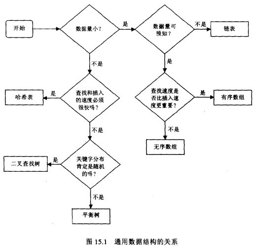 若想存儲真實(shí)世界中的類似人事記錄、存貨目錄、合同表或銷售業(yè)績等數(shù)據(jù),則只需要一般用途的數(shù)據(jù)結(jié)構(gòu)。在本書中屬于這種類型的結(jié)構(gòu)有數(shù)組、鏈表、樹和哈希表。他們被稱之為通用的數(shù)據(jù)結(jié)構(gòu)是因?yàn)樗鼈兺ㄟ^關(guān)鍵字的值來存儲并查找數(shù)據(jù),這一點(diǎn)在通用數(shù)據(jù)庫程序中常見到(棧等特殊結(jié)構(gòu)正好相反,它們只允許存取一定的數(shù)據(jù)項(xiàng))。