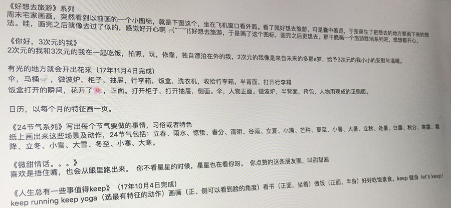 建立靈感池,把想到的靈感、自己及身邊的事記錄下來,需要畫的時(shí)候就可以從中選取。