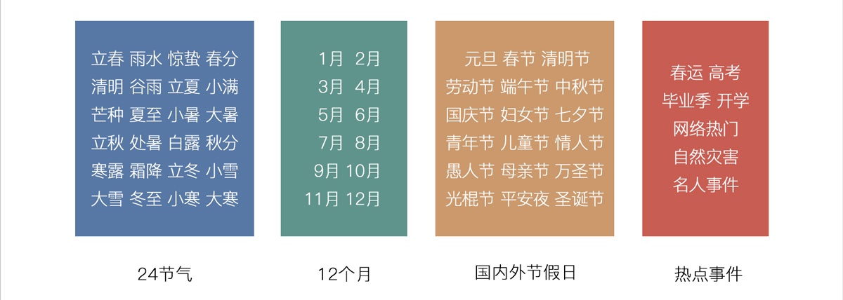 節(jié)氣、月份、節(jié)日、熱點(diǎn)事情等