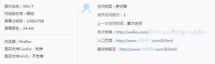 如果這種跳轉(zhuǎn)方式是重定向,那么統(tǒng)計工具會將無視A頁面的存在,將B頁面的訪問來源將統(tǒng)計為來自社交網(wǎng)站。這種情況跟上述的AB同站是很相似的,同樣是將通過重定向跳轉(zhuǎn)的A頁面,給忽略得一干二凈。