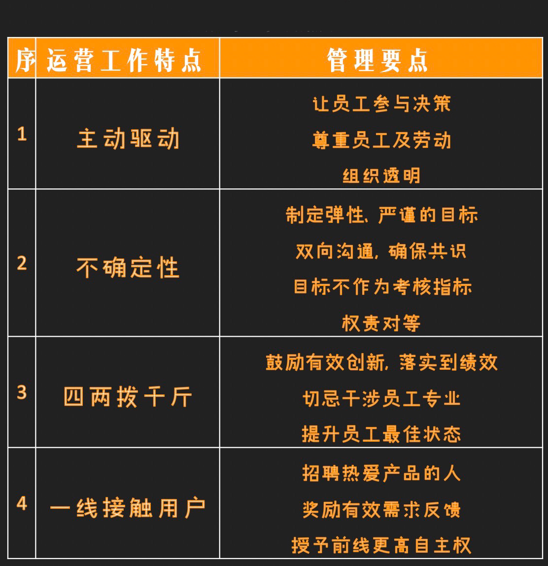 上述僅僅從工作內(nèi)容的角度對運(yùn)營管理提出的要求。