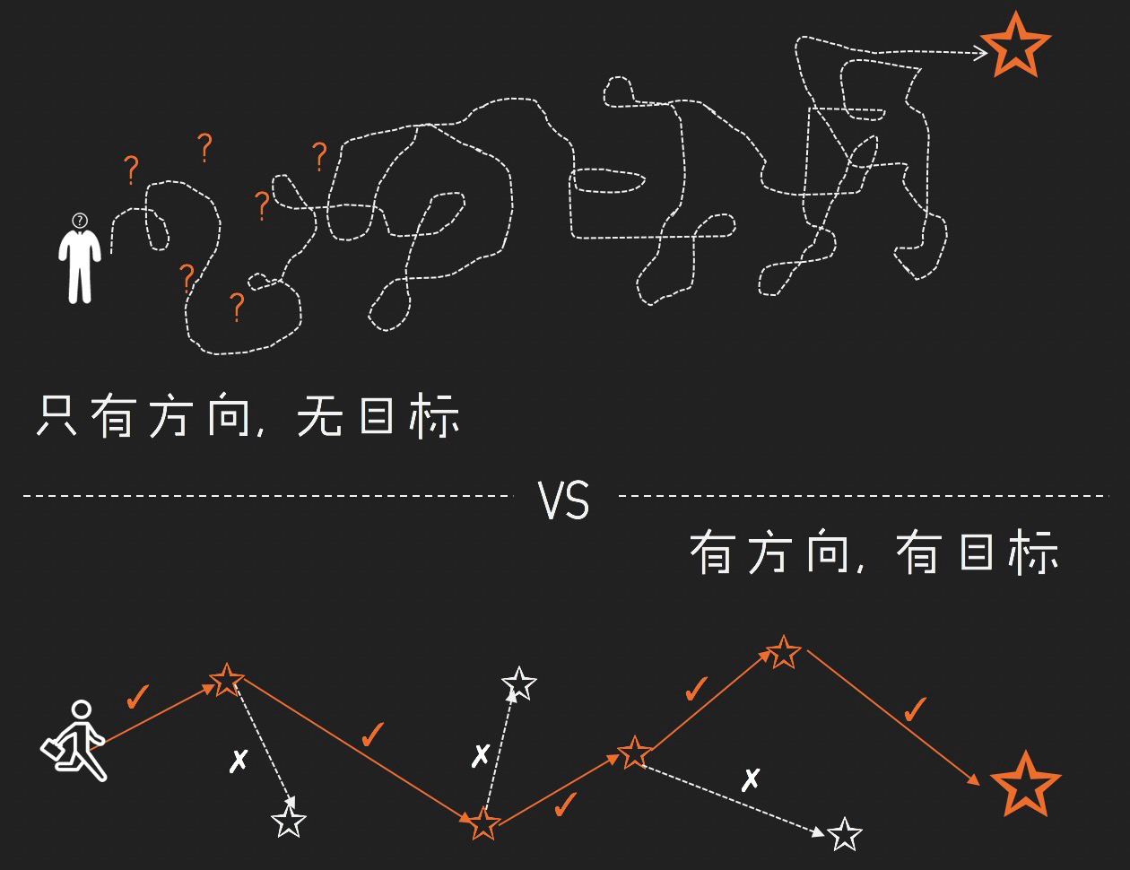 理由很簡單,運(yùn)營是肩負(fù)著互聯(lián)網(wǎng)企業(yè)“速度與激情”的驅(qū)動(dòng)部門,光有運(yùn)營方向卻不知道每一步的具體目標(biāo),這不符合人腦的運(yùn)作原理(大腦是具體目標(biāo)驅(qū)動(dòng)的,以前的推文有談過),更別提讓團(tuán)隊(duì)效能大化。