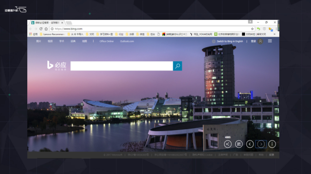 然后是必應(yīng),必應(yīng)比谷歌做的晚,但口碑也不錯(cuò)。你可以看到它做了“高清圖片”的運(yùn)營(yíng),每天換一張讓人看著特別好心情愉悅,這個(gè)還不是重要的,它還加了功能入口。