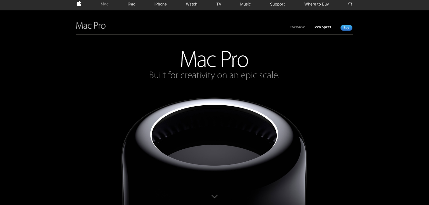Mac Pro 的頁面就加入了一些令人抓狂的滾動特效,這是為了適配它的視差布局。