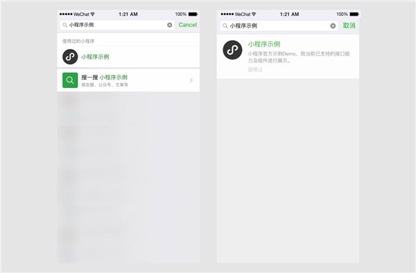 在微信客戶端最上方的搜索窗口,你可以通過搜索獲取一個(gè)小程序。
