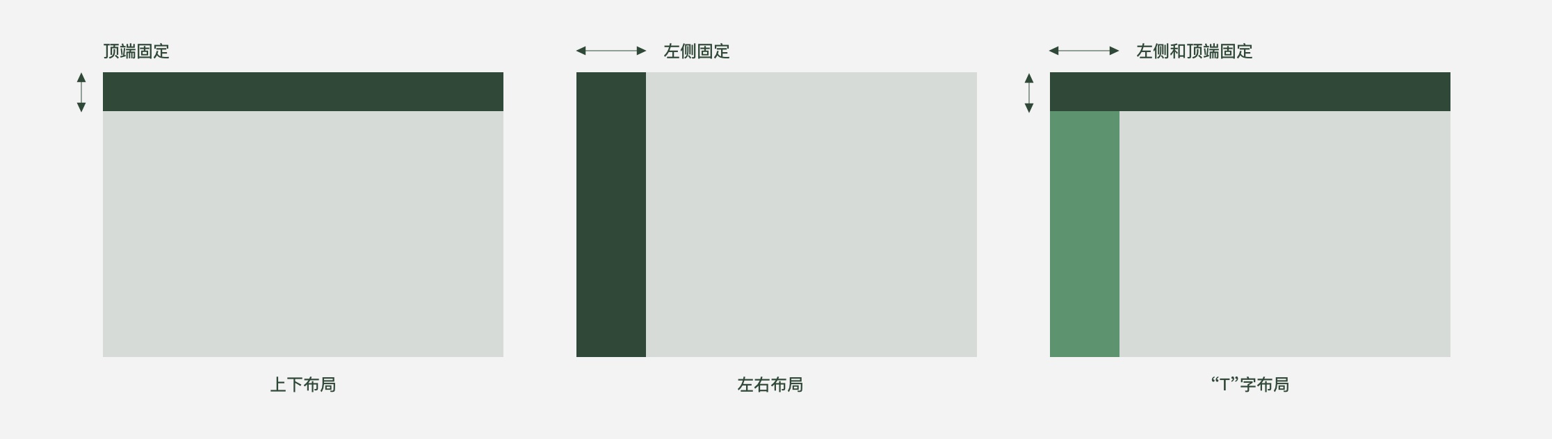 要弄清楚用什么尺寸設計,首先要確定布局。我們常用的就是上下布局、左右布局、“T”字布局。其他布局基本上是這三者的延伸和拓展。上下布局一般是固定頂部,有點類似于 PC網頁設計,實際上也差不多。現(xiàn)在的B端設計中很多都會搭配著這種布局用,比如幫助中心、消息通知,客戶入網申請等(這些我都遇見并做過)。左右布局和“T”字布局,一般固定左側,右側區(qū)域做自適應。
