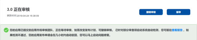 AppGallery Connect 10.0.1版本還新增了“撤銷審核”及“催審”服務(wù),開發(fā)者在提交應(yīng)用上架申請后,若發(fā)現(xiàn)應(yīng)用存在問題或信息填寫有誤即可點(diǎn)擊“撤銷審核”按鈕,無需再通過人工客服申請撤銷;若應(yīng)用提交長時間未得到審核結(jié)果,可點(diǎn)擊“催審”按鍵,該應(yīng)用審核優(yōu)先級將自動提前,保障為用戶帶來最新鮮的應(yīng)用體驗(yàn)。
