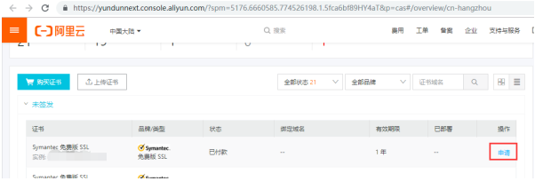 (這里需要注意,阿里云免費證書一次只能購買一年)