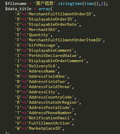 這里是先創(chuàng)建一個(gè)表格第一行的標(biāo)題數(shù)組和導(dǎo)出的文件名稱