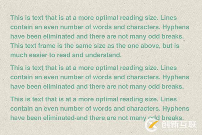 文本應(yīng)足夠大,容易閱讀,也不能太大,太大會(huì)導(dǎo)致奇怪的停頓或中斷閱讀。