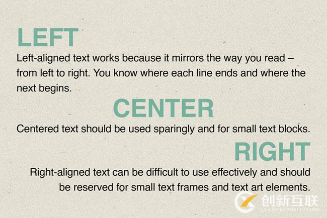 文本是否在中心,可以極大地影響可讀性。一般而言,網(wǎng)站上的文字趨向于左對(duì)齊。左對(duì)齊的作品,因?yàn)樗从沉四愕拈喿x方式 - 從左至右。你知道每一行結(jié)束,在哪里開(kāi)始。居中的文字,而流行,本身不適合可讀性。