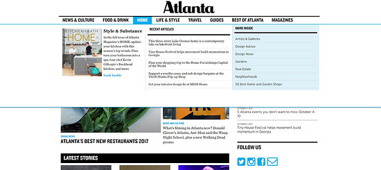 Atlanta Magazine 的大型導(dǎo)航菜單給人的體驗就非常流暢,下拉菜單中嵌入了大量的鏈接。由于響應(yīng)式的滑動導(dǎo)航在移動端上也已經(jīng)很常見了,這使得它還輕松兼顧到了移動端的設(shè)計。