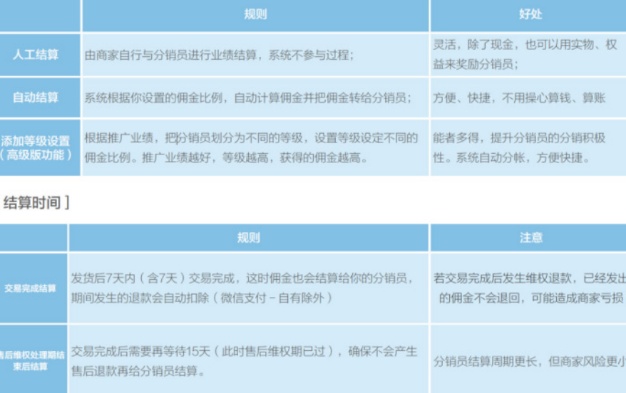 上文中提到分銷層級法律允許的范圍最多只能有三級,可以根據(jù)具體的業(yè)務(wù)需要合理的設(shè)計(jì)產(chǎn)品的封校層級,最好能做到靈活的選擇。 分銷員之間建立客戶關(guān)系:避免分銷員之間互相下單賺錢。如果選擇不允許,分銷員之間相互推廣、購買都不算傭金,即分銷員A點(diǎn)了分銷員B的推廣鏈接,分銷員A不會(huì)成為分銷員B的客戶,也不會(huì)賺取傭金。(好處是:避免分銷員之間為了拉業(yè)績,互相下單賺錢) 分銷內(nèi)購:選擇開啟,則客戶成為分銷員后將立即與自己綁定客戶關(guān)系,不受保護(hù)期限制,分銷員自己購買也可獲得傭金。