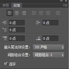 一般句號、問號、嘆號、逗號、頓號、分號、冒號等不能出現(xiàn)在行首;換言之,引號、括號、書名號等的前半部分不能出現(xiàn)在行末,后半部分不能出現(xiàn)在行首。很多專業(yè)的排版軟件比如Photoshop/Illustrator/Indesign/方正飛騰在段落設(shè)置面板中都有如下圖的設(shè)置:段落面板—避頭尾法則設(shè)置:JIS嚴格