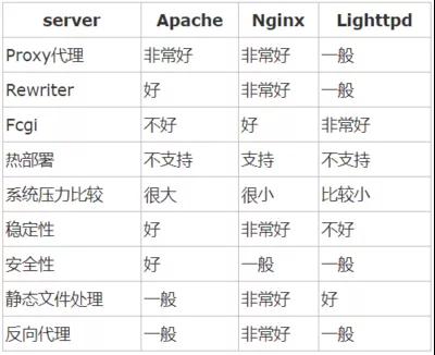 幾種常用 Web 服務(wù)器對(duì)比如下圖: