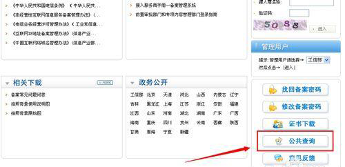 然后進(jìn)入到備案網(wǎng)站首頁后,拉到首頁右下部分,看到有個“公共查詢”欄目,點擊進(jìn)入: