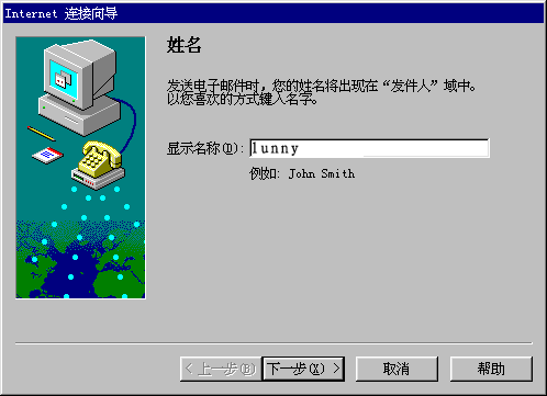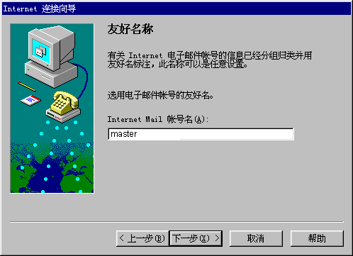 此處填寫的是在Outlook express 中您的英文或者拼音名字。它并不影響您的任何工作,只是在您有多個郵箱時可以用來標識是哪個信箱。至此,您已經(jīng)簡單的設置完您的一個信箱。再進行簡單的幾步設置,就可以開始使用信箱了。