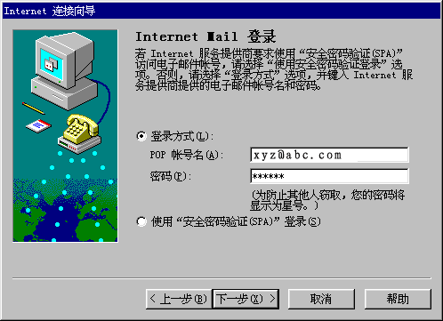 在登錄方式的pop帳號名和密碼中填寫集團電子郵件開戶流程單中您的用戶名 和相應的密碼。