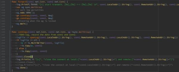 先輸出一個日志說明是對哪兩個連接進行雙向轉(zhuǎn)發(fā),然后通過sync包下的WaitGroup實現(xiàn)一個條件阻塞功能,防止在Goroutine還未執(zhí)行完,主線程就已經(jīng)退出了。