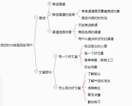 其中比較重要的就是如何“把好的內容呈現(xiàn)給用戶”?這里分為推送和文案兩部分。