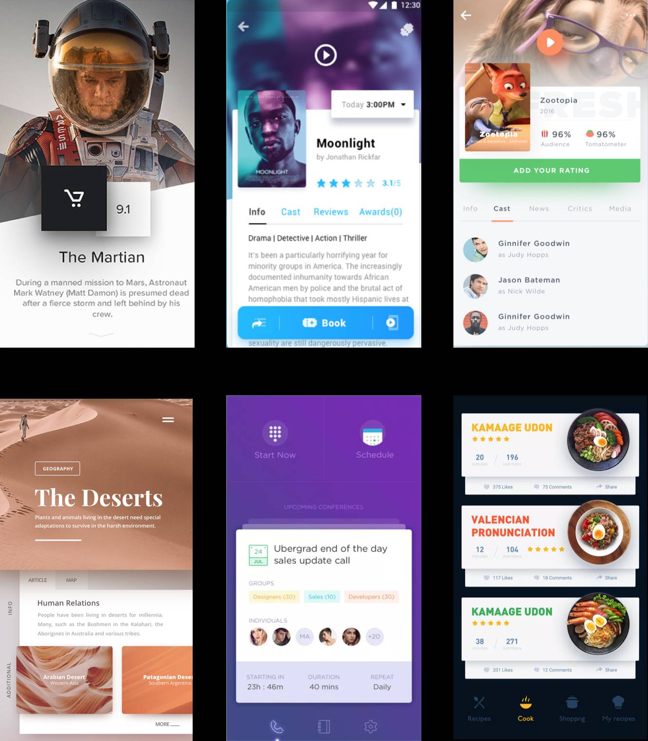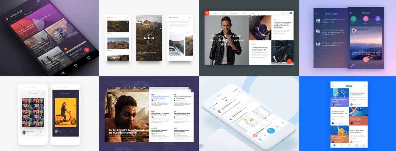 隨著扁平化1.0運(yùn)用了兩三年,新的扁平化2.0時(shí)代,在漸變流行打破了開端,這周研究一些扁平化2.0設(shè)計(jì)師的移動(dòng)端設(shè)計(jì)布局形式,整理分析了一些常用的布局形態(tài)。