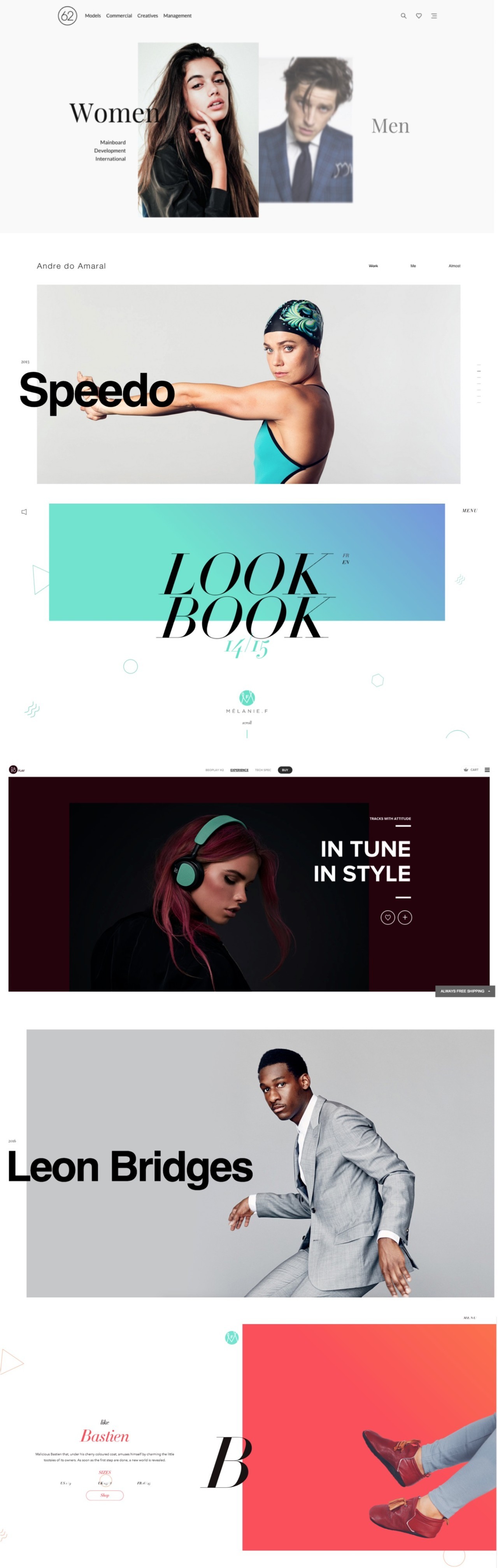 簡析:這種風(fēng)格打破網(wǎng)格,圖片局部展示,很好的在平面有序的空間里形成了視覺差異性,這種差異性往往讓頁面顯得獨(dú)特,但是需要注意頁面的留白和字體的運(yùn)用選擇。